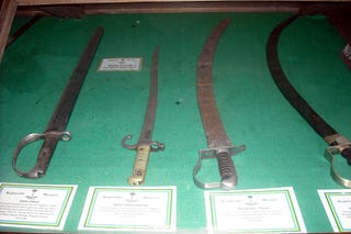 Italian Army sword, Italian Army bayonet, and Ethiopian swords on display at the Ghana Armed Forces Museum, Kumasi